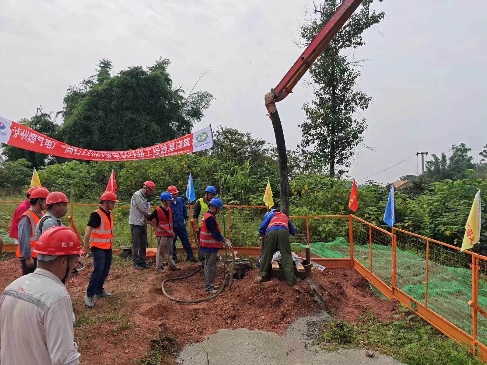 施工現(xiàn)場,各參建單位在共同核查了定位復(fù)測、模板固定、鋼筋綁扎、混凝土澆筑、地腳螺栓保護(hù)、混凝土試塊制作等關(guān)鍵作業(yè)環(huán)節(jié),確認(rèn)所有均高標(biāo)準(zhǔn)執(zhí)行無誤后,正式開始了相關(guān)塔位的基礎(chǔ)澆筑。